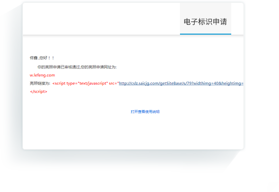 • 可按照郵件的使用說明,將電子標(biāo)識(shí)添加到網(wǎng)站首頁(yè)下方的醒目位置