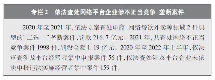 保障公平競(jìng)爭(zhēng)的網(wǎng)絡(luò)市場(chǎng)環(huán)境。隨著網(wǎng)絡(luò)平臺(tái)企業(yè)不斷擴(kuò)展自身的體量和實(shí)力,“掐尖式并購(gòu)”、無(wú)正當(dāng)理由屏蔽鏈接、“二選一”、大數(shù)據(jù)殺熟、流量挾持等妨礙市場(chǎng)公平競(jìng)爭(zhēng)的問(wèn)題也逐漸凸顯。中國(guó)積極回應(yīng)人民群眾訴求,在支持網(wǎng)絡(luò)平臺(tái)企業(yè)創(chuàng)新發(fā)展的同時(shí),依法規(guī)范和引導(dǎo)資本健康發(fā)展,采取多種治理平臺(tái)競(jìng)爭(zhēng)失序的執(zhí)法舉措。聚焦大型網(wǎng)絡(luò)平臺(tái)價(jià)格欺詐、低價(jià)傾銷等重點(diǎn)問(wèn)題,通過(guò)行政約談、行政指導(dǎo)、規(guī)則指引等多種監(jiān)管手段,整治壟斷和不正當(dāng)競(jìng)爭(zhēng)行為。圍繞民生、金融、科技、傳媒等重點(diǎn)行業(yè),依法審查涉及平臺(tái)經(jīng)營(yíng)者集中案件,防止可能妨礙市場(chǎng)競(jìng)爭(zhēng)和創(chuàng)新發(fā)展的并購(gòu)行為,引導(dǎo)網(wǎng)絡(luò)平臺(tái)企業(yè)增強(qiáng)合規(guī)意識(shí),規(guī)范自身經(jīng)營(yíng)行為。通過(guò)一系列行動(dòng),平臺(tái)經(jīng)濟(jì)市場(chǎng)環(huán)境不斷優(yōu)化,公平競(jìng)爭(zhēng)的行業(yè)生態(tài)穩(wěn)步向好,中小企業(yè)獲得更廣闊的發(fā)展空間,統(tǒng)一、開放、公平、競(jìng)爭(zhēng)、有序的網(wǎng)絡(luò)競(jìng)爭(zhēng)環(huán)境正在形成。